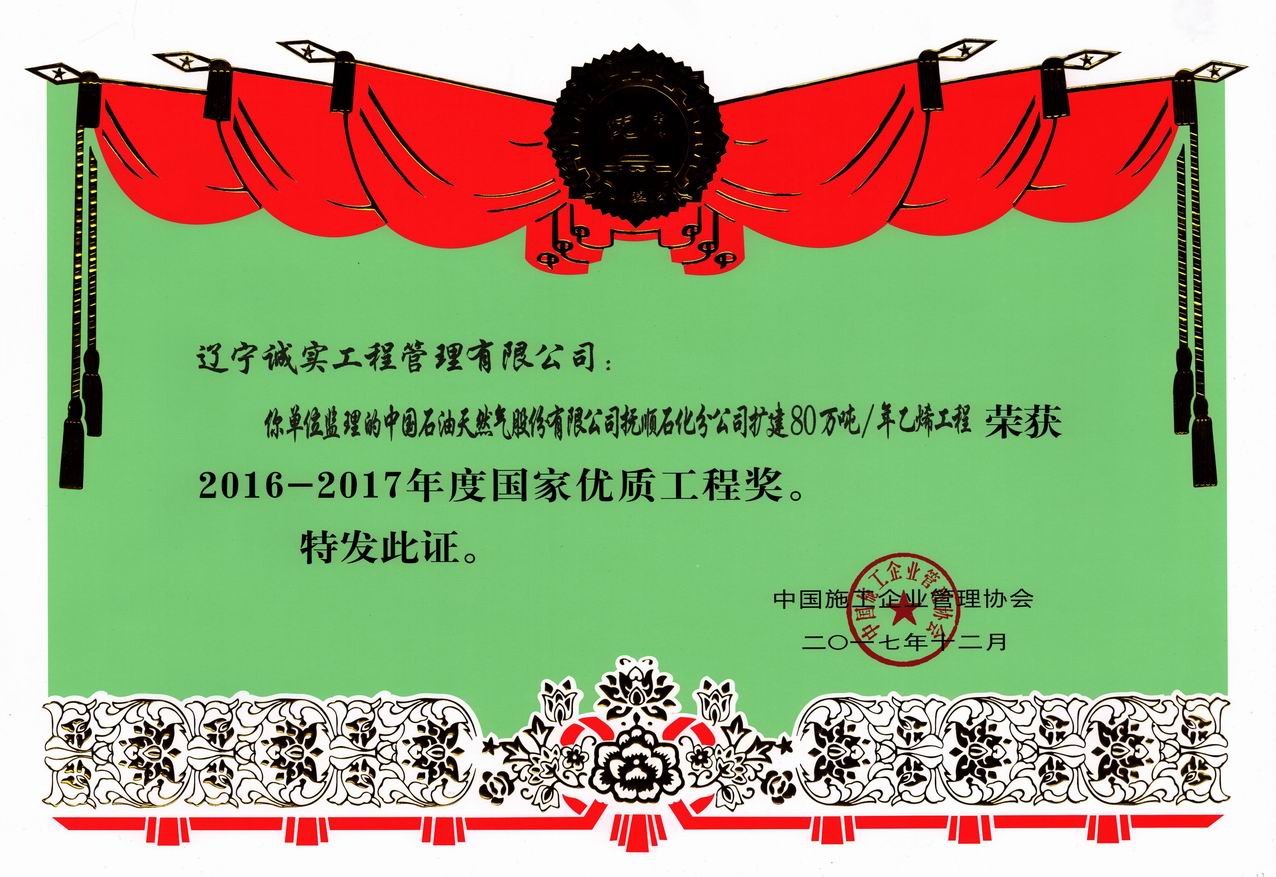 2016-2017年國家優(yōu)質(zhì)工程獎(jiǎng)(撫順石化擴(kuò)建)