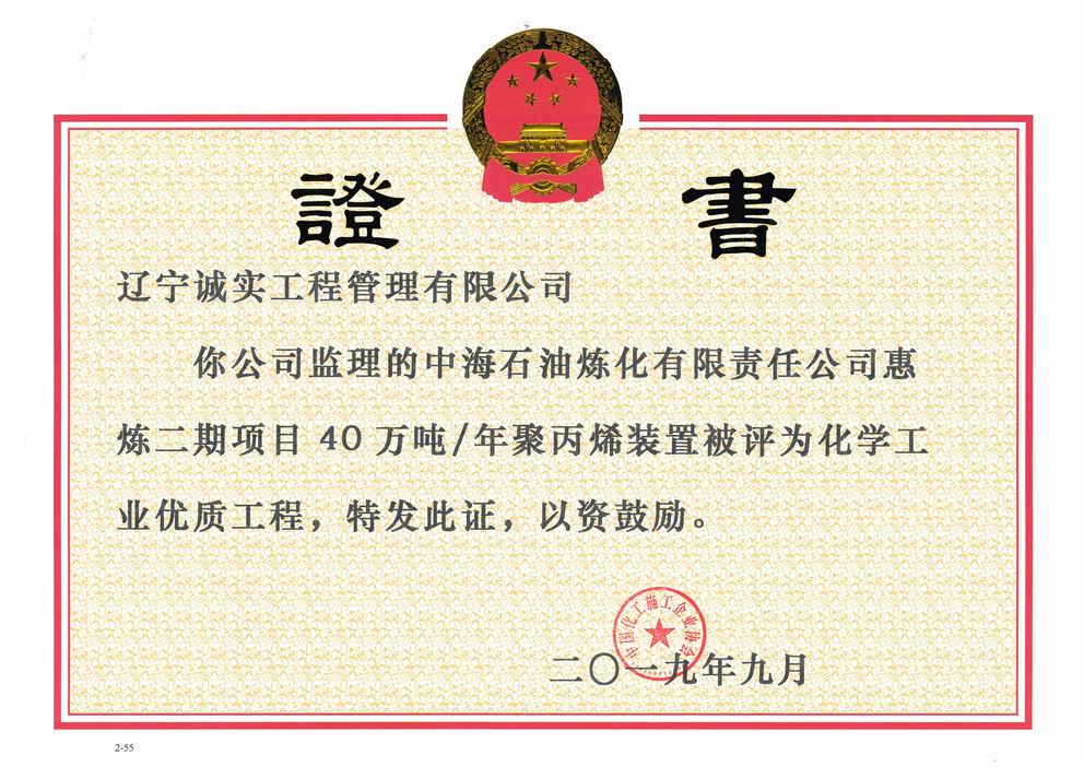 2019年化學(xué)工業(yè)優(yōu)質(zhì)獎(中海油惠煉二期項(xiàng)目40萬噸/年聚丙烯裝置)